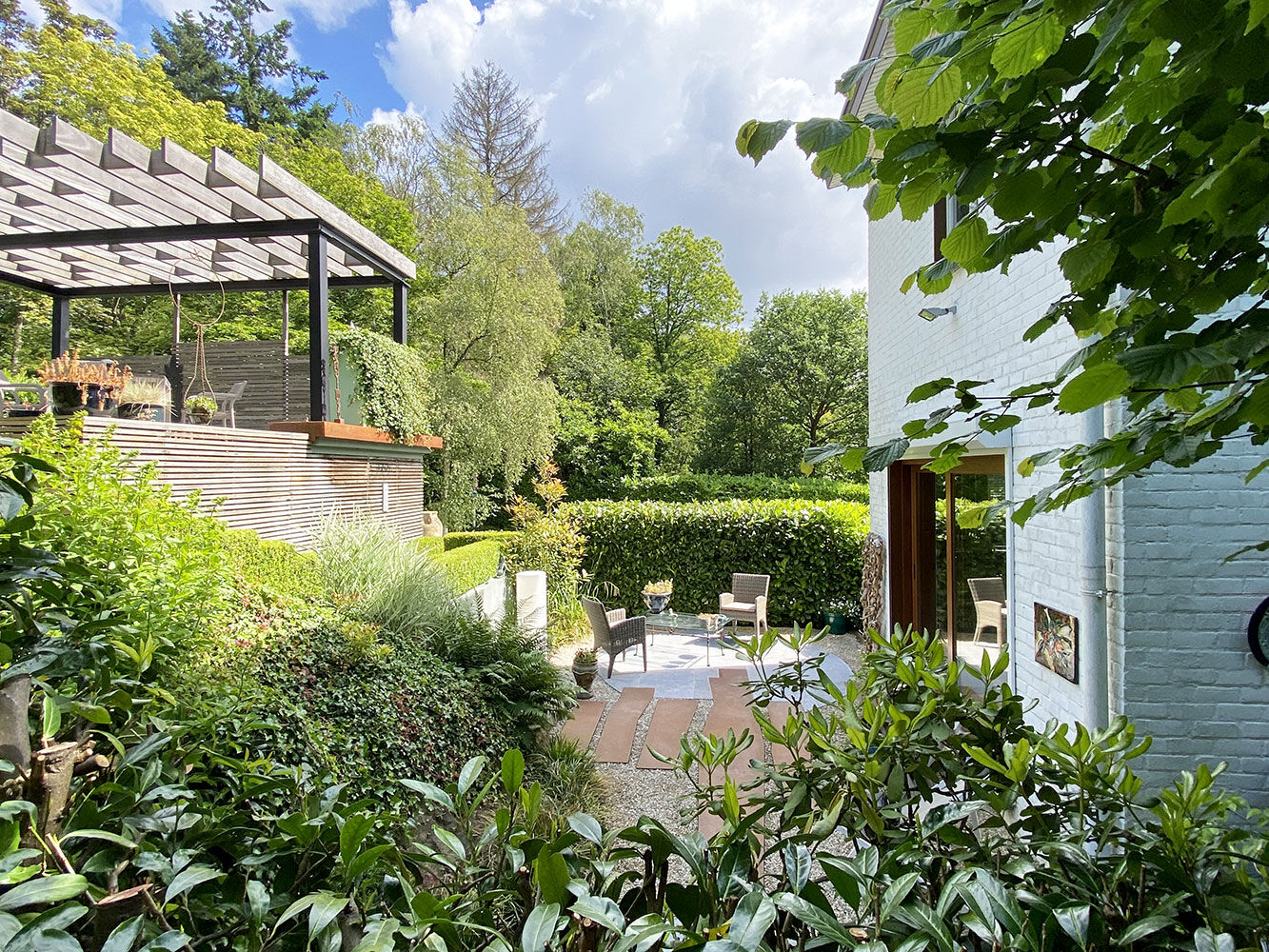Une terrasse-jardin abritée et reposante