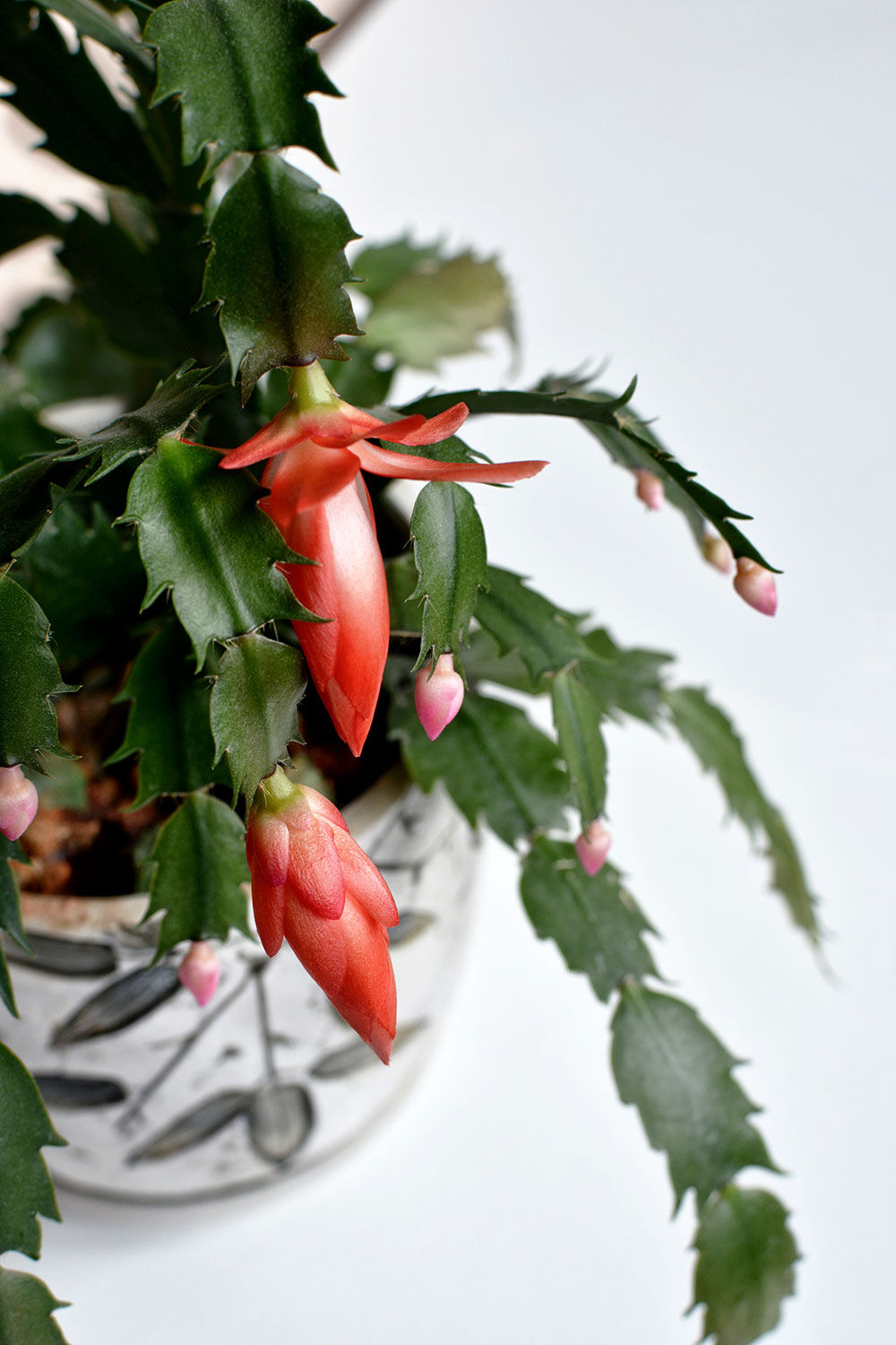 Côté plante, le cactus de Noël ou ‘schlumbergera’ fleurit de longs mois ; en suspension, il apportera de la joie aux hivers les plus rudes.