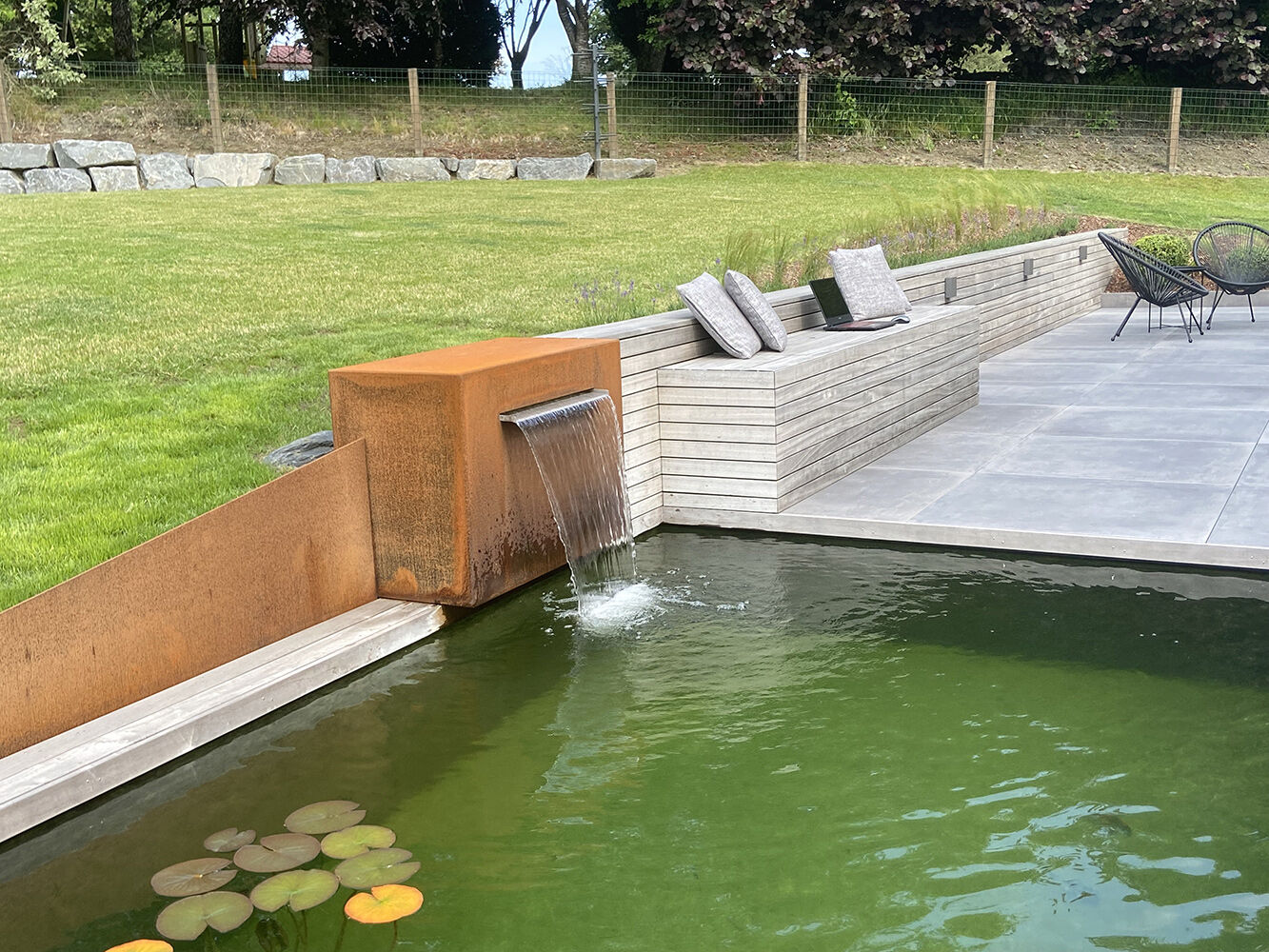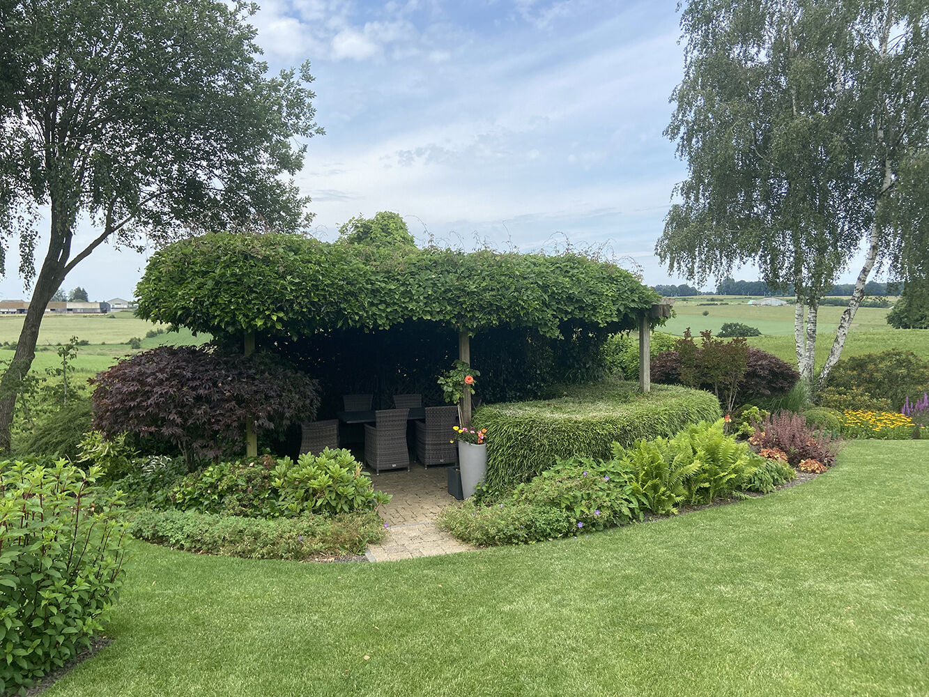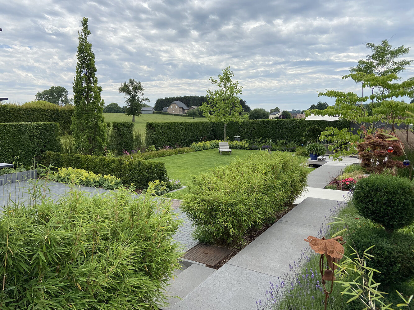 Ce jardin présenté par Nicolas Dumont et Michaël Frippiat est un exemple complet de réussite. Que ce soit au niveau de la conception, de la construction ou du choix des végétaux, cet aménagement présente une harmonie et un équilibre qui font de l’ensemble une belle illustration de l’intégration parfaite entre la maison, le jardin et le paysage.