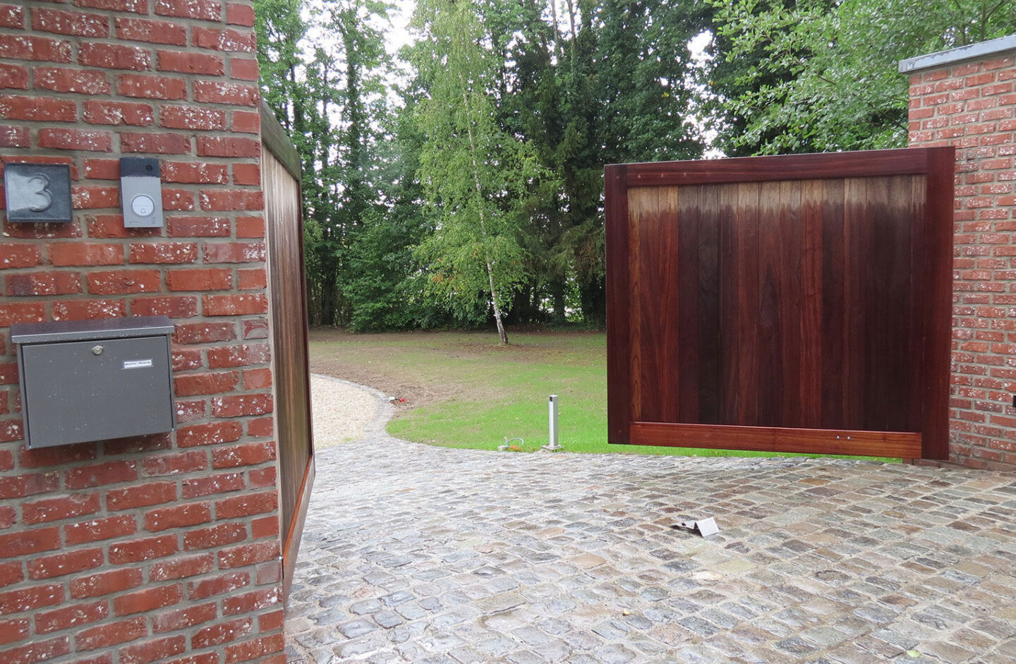 « Tout l’espace jardin était auparavant inexploitable. Il y avait des voitures qui passaient devant l’entrée avant de se stationner. Nous avons proposé un trajet plus court : les gens continuent sur la route pour rentrer de l’autre côté, directement du côté garage et parking, et ils empruntent ensuite un petit chemin d’accès piétonnier qui mène tout droit à la porte d’entrée. C’est cela qui nous a permis de libérer un espace pour implanter la piscine ».