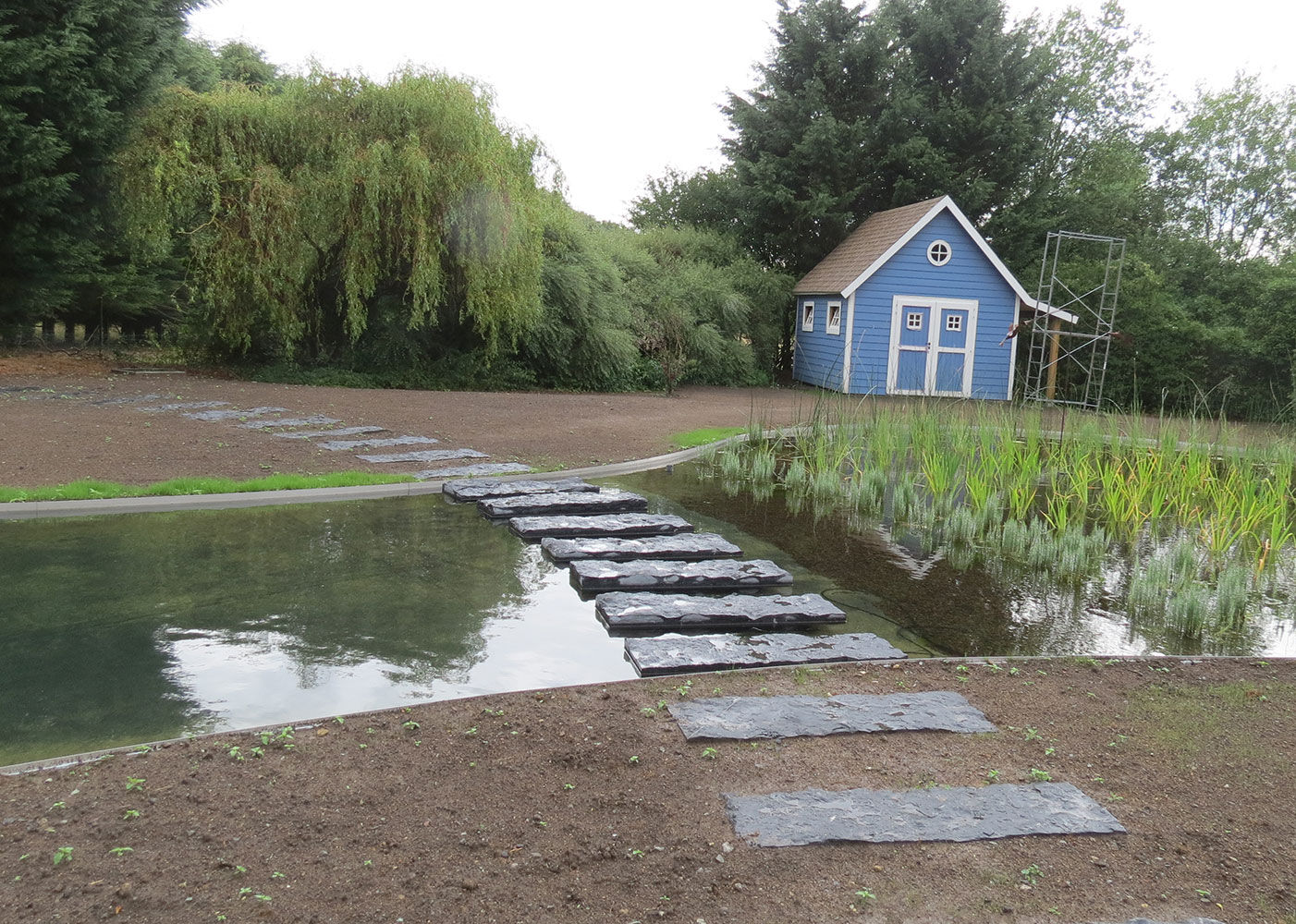 « Dans le cadre de ce projet, c’est le client qui nous a appelés. Ce dernier souhaitait aménager dans son jardin, déjà existant, une pièce d’eau dans laquelle il serait possible de se rafraîchir, mais également de faire vivre ses projets de modélisme. Nous sommes alors partis sur l’ébauche d’une piscine naturelle. Dans cette optique, nous avons dessiné un plan, je dirais, assez chamboulant ».