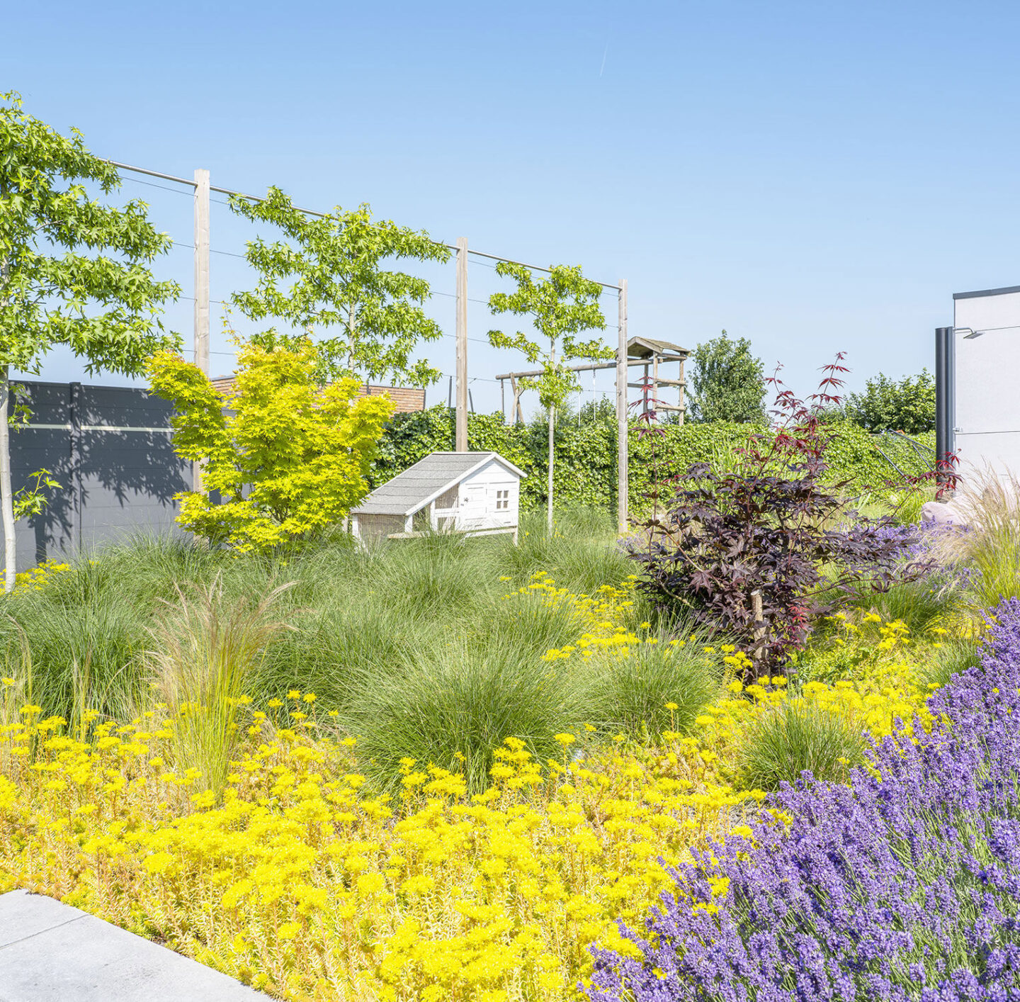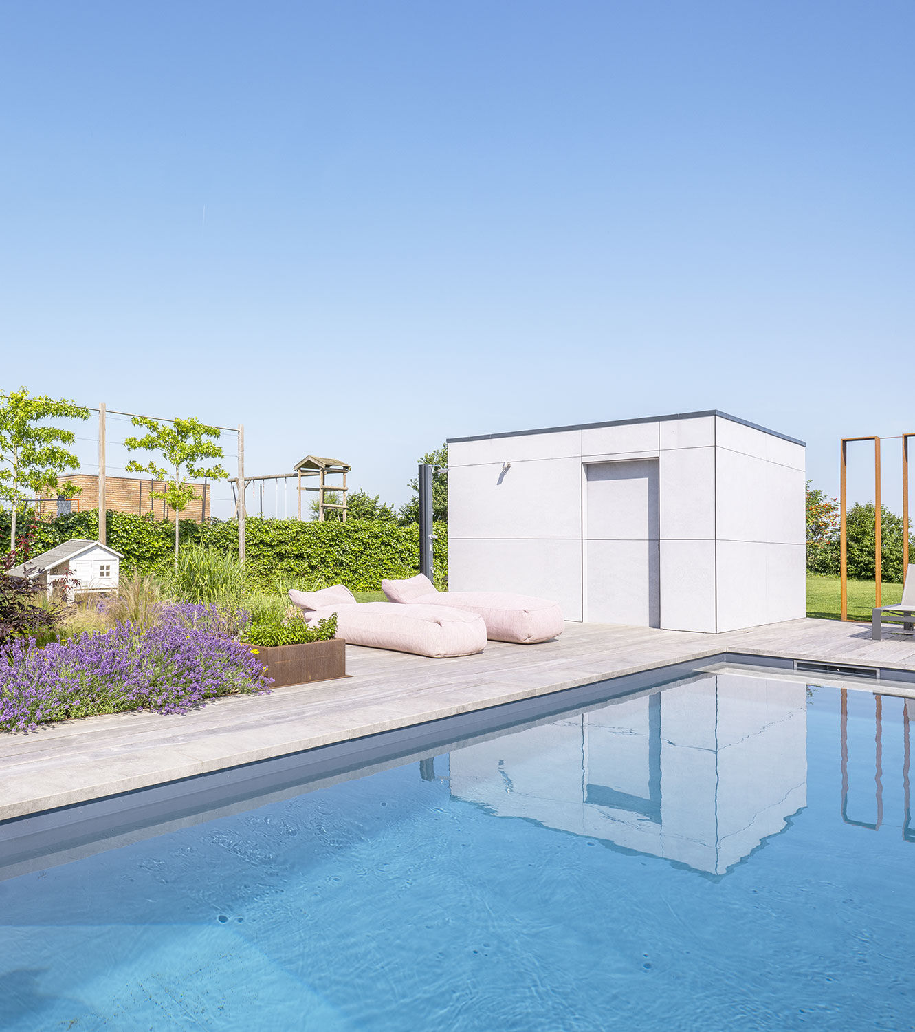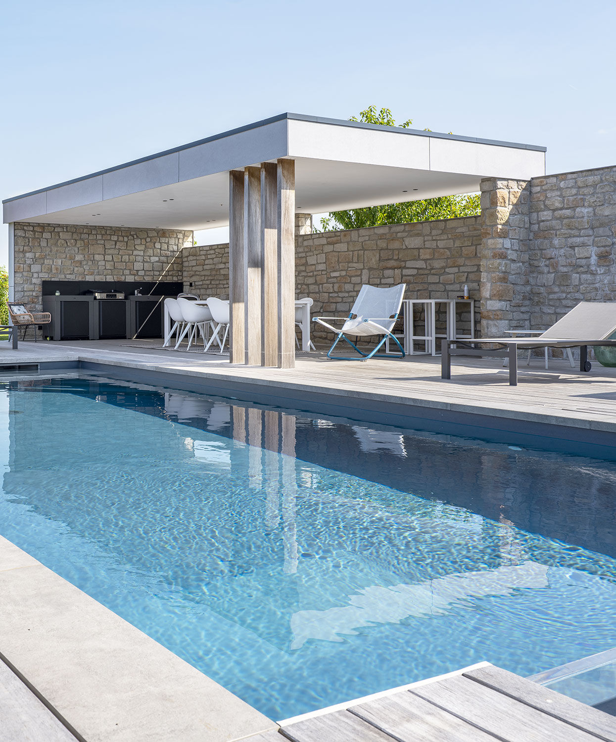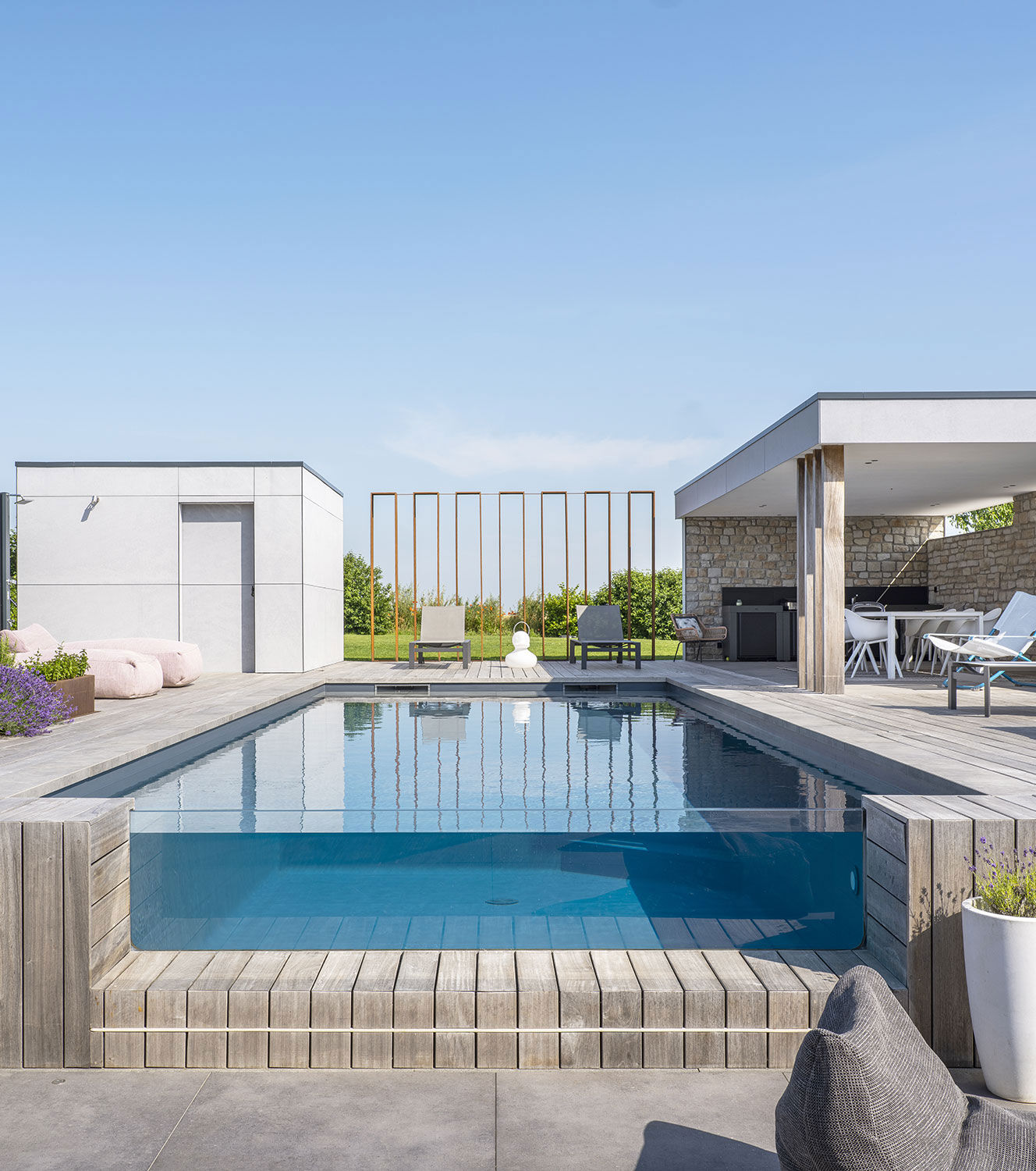 Dans ce jardin, tout a été réalisé par les équipes d’Abords & Bois. Seuls les travaux d’étanchéité de la piscine et l’électricité ont été sous-traités.