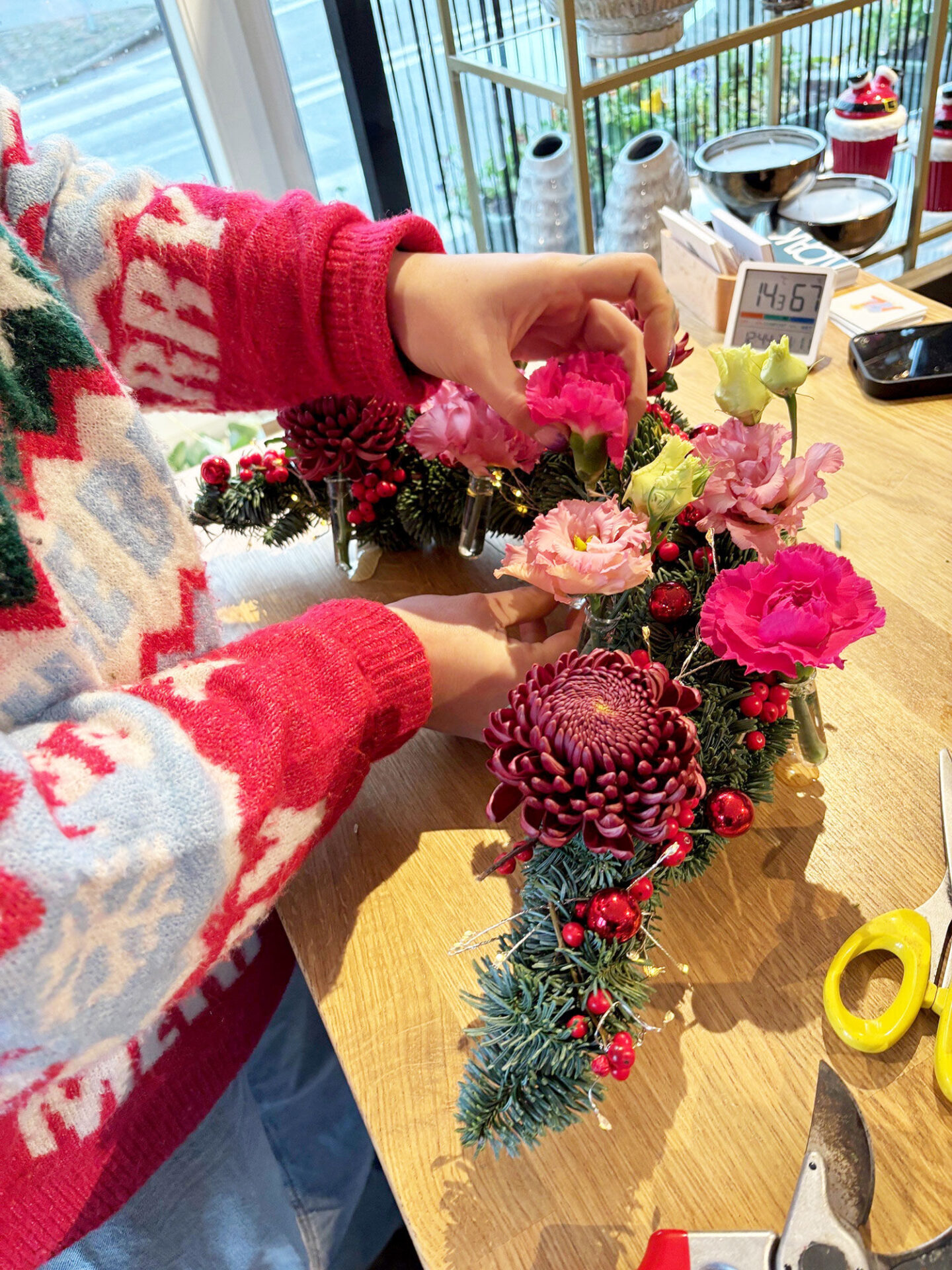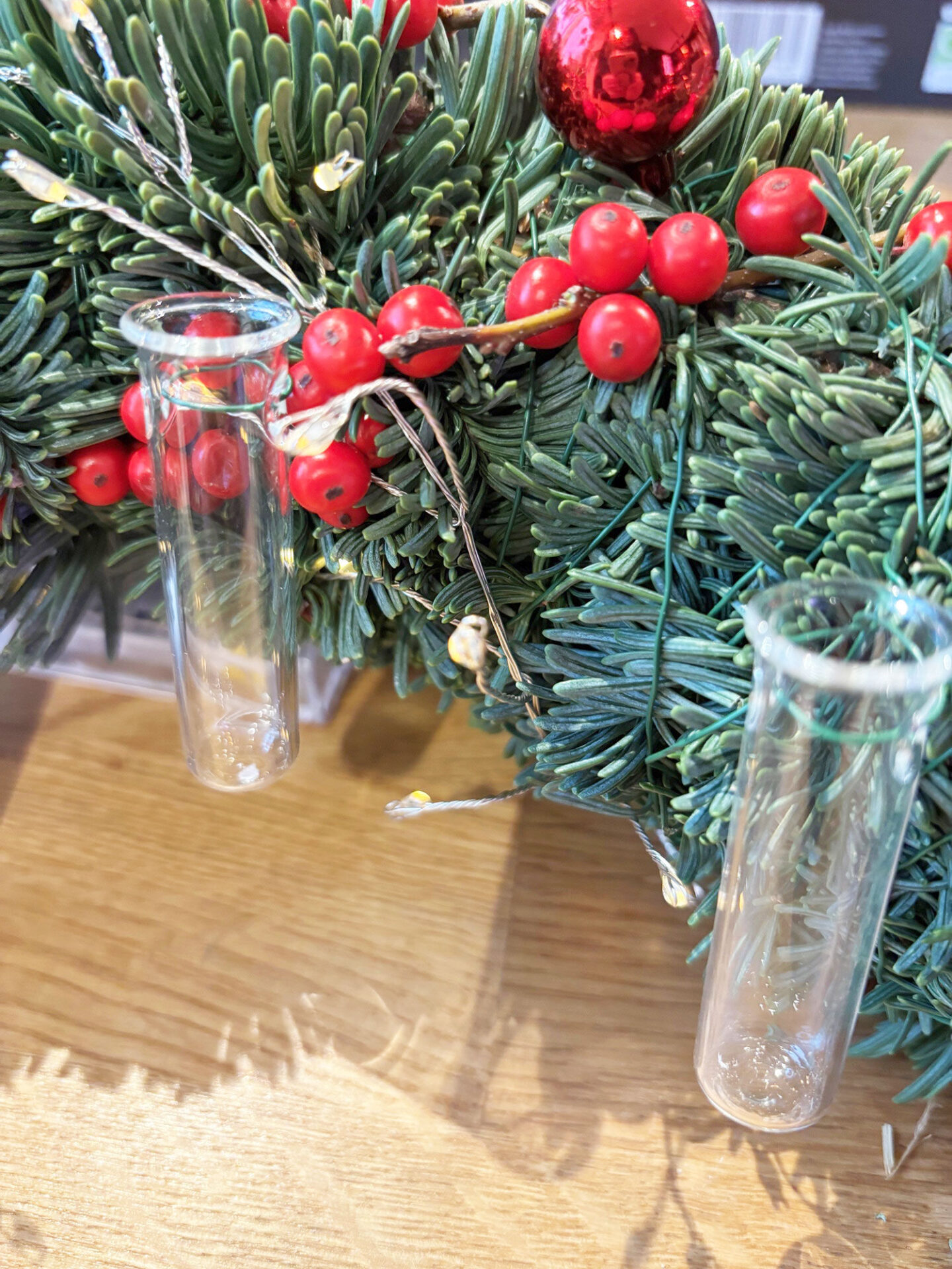 • De la verdure (branches de sapins, baies de houx, fleurs diverses).