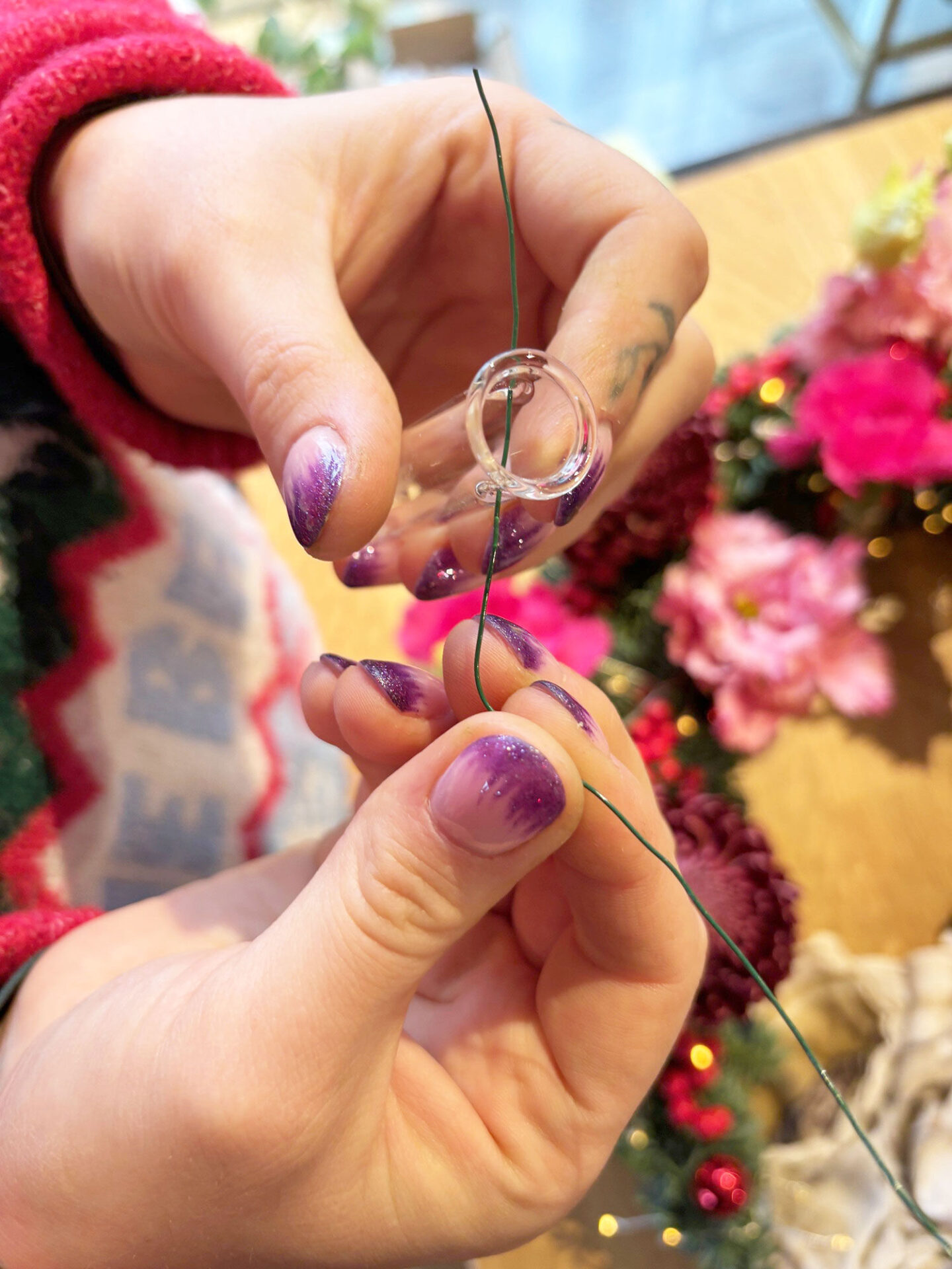 5. Fixez les éprouvettes avec le fil de fer le long de la couronne.