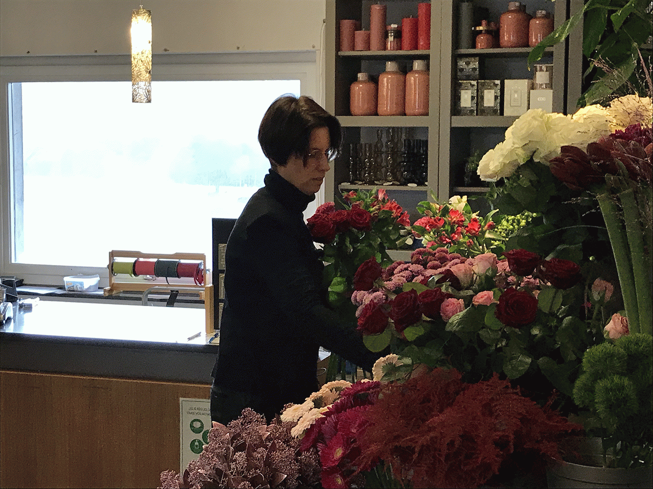 Un beau matin, ce désir s’est présenté à elle comme une évidence. Le côté très créatif du métier, le matériau naturel et magnifique ainsi que le contact avec la clientèle n’y sont, sans doute, pas pour rien.